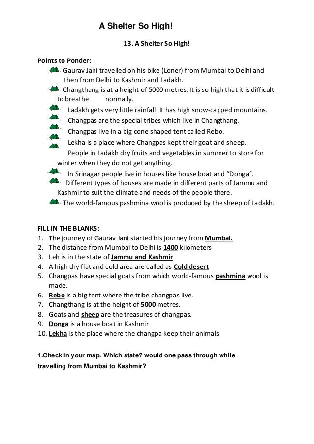 A Shelter So High Class 5 Notes Cbse Evs Chapter 13 Pdf